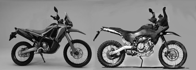 Si hace un par de meses, iniciando este 2022, surgieron las fotos espia y la noticia de una nueva KTM390 version "R", esta mas al gusto europeo, finalizando mayo ha llegado otra "captura", en este caso de una supuesta GAS GAS 400, la cual como se puede apreciar en el fotomontaje inferior, se trataría de la evolución de la contemplada en febrero pasado, entonces como KTM.